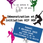 Dans la poursuite de la thématique découverte amorcée depuis la rentrée, la municipalité propose aux jeunes du village de 6 à 18 ans une initiation au hip hop. Après le foot freestyle et les échecs, il est proposé de découvrir un style de danse peu commune: le hip hop. L’initiation sera précédée d’une démonstration. Prévue … Lire la suite de Les jeunes à la découverte du hip hop